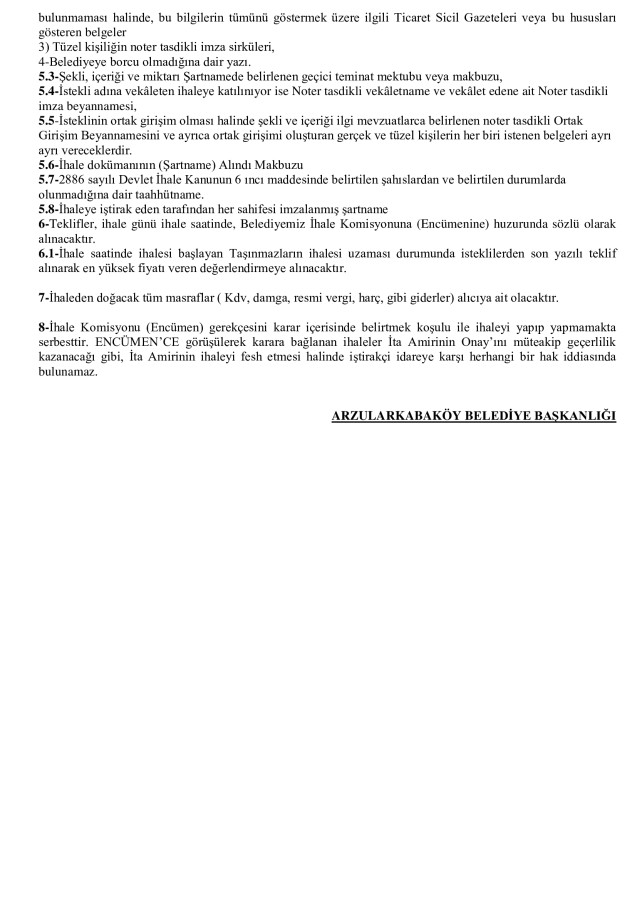 Arsa Satış İhalesi