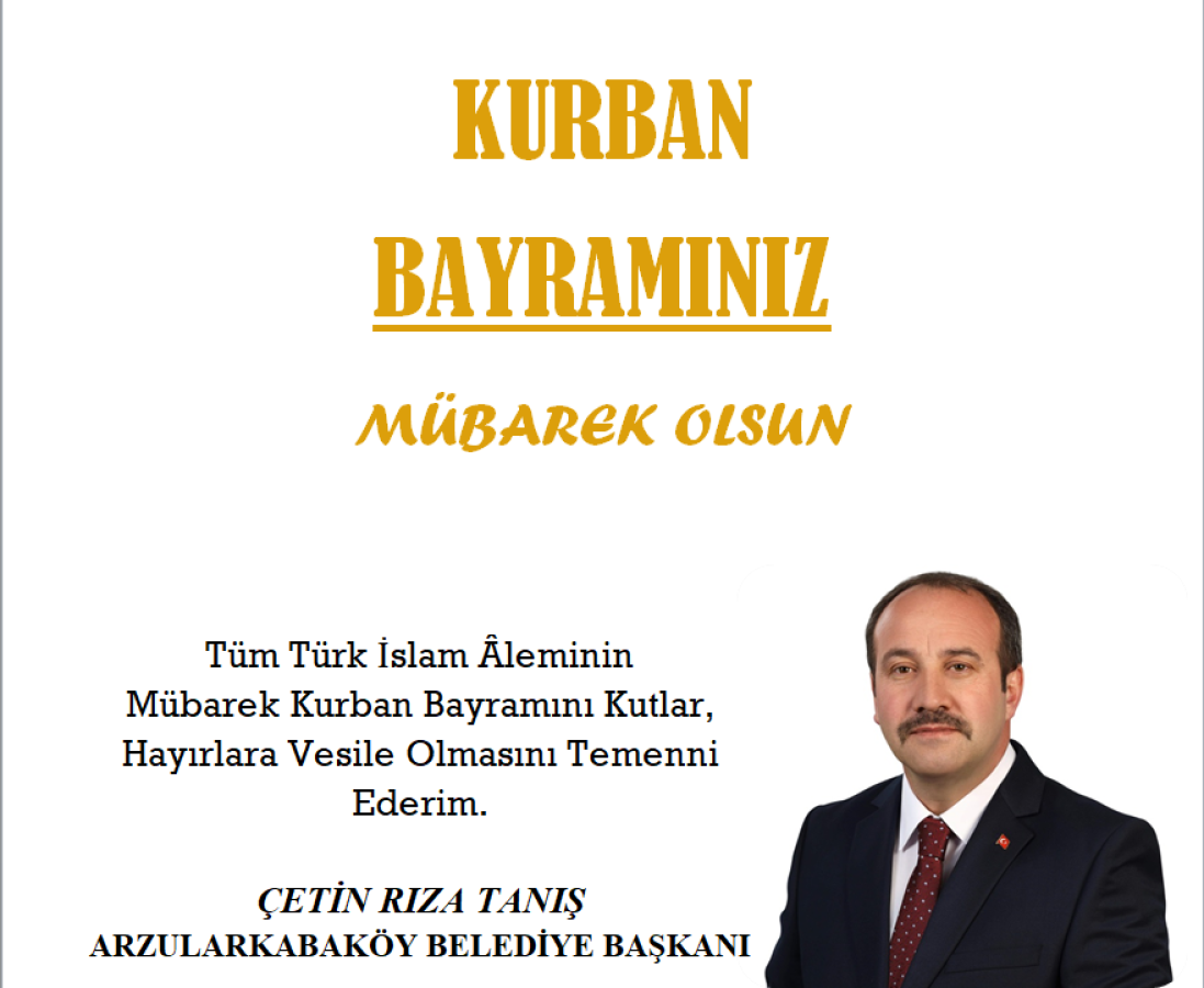 Yardımlaşma, dayanışma ve şefkat duygularının zirveye ulaştığı dini bayramlarımızdan biri olan mübarek Kurban Bayramı’na ulaşmanın heyecanı ve mutluluğu içindeyiz. Bayramlar; insanlar arasında karşılıklı sevgi ve saygı bağlarını pekiştiren, dargınlıkları unutturup barıştıran, kardeşçe kucaklaştıran, birlik ve beraberliği, bir arada yaşama arzusunu kuvvetlendiren, milli ve dini duyguların, örf ve adetlerin uygulandığı, sergilendiği, toplumda millet olma bilincinin şekillendiği ve güçlendiği müstesna günlerdir. Bu güzel günleri; kırgınlıkların, dargınlıkların unutulduğu, karşılıklı sevgi ve saygının pekiştiği, hoşgörünün hâkim olduğu bir mana ikliminde yaşamak ve kalıcı kılmaya bir vasıta olarak görmek gerekmektedir. Bu duygu ve düşüncelerle; Arzularkabaköy Beldesi vatandaşlarımızın ve tüm Türk ve İslam Âleminin Kurban Bayramını en içten duygularımla kutluyorum.