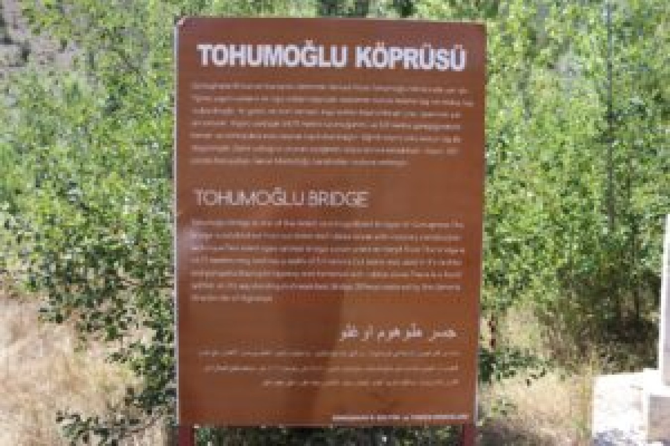 Tohumoğlu Köprüsü: Gümüşhane-Erzurum yolunun Tohumoğlu kesimindedir. Selçuklu dönemi yapısı olduğu sanılmaktadır. Ekim- 1575 Ferruh Zad Oğlu Halebi tarafından yaptırılmıştır. Tohumoğlu Mevkii’nde, Harşit Çayı üzerindedir. Köprü, 64,70 m x 5,11 metre ölçülerinde, iki gözlü, sivri kemerli olarak inşa edilmiştir. Kemer, korkulukları kesme taş, diğer kısımlar moloz taştır. Döşemesi kademelidir. Dere yatağı içerisindeki ayağının önünde memba yönünde “V” şeklinde sel yaranı, mansap yönünde yarım daire şeklinde topuğu vardır. Muhtemelen harpuşta veya düz döşemesi yapılan onarılar esnasında iki tarafa ve içe eğimli olarak yapılmıştır. Bu özelliği ile üniktir.